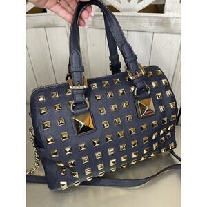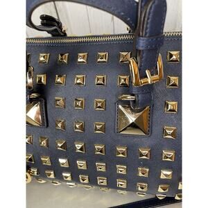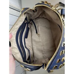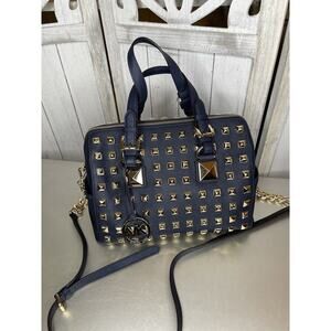 Michael Kors Navy Blue Leather Gold Studded Grayson Satchel Top Handle