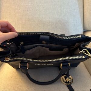 Michael Kors Navy Blue Leather Handbag with Gold Accents