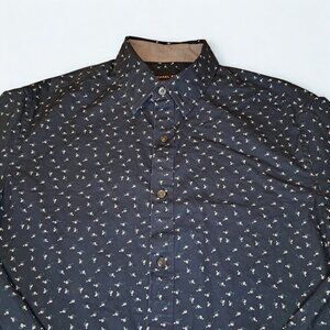 Michael Kors Navy Blue Long Sleeve Slim Fit Button Down Shirt Mens Medium