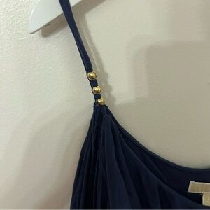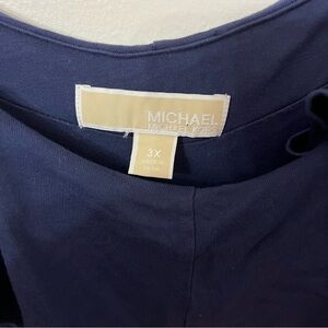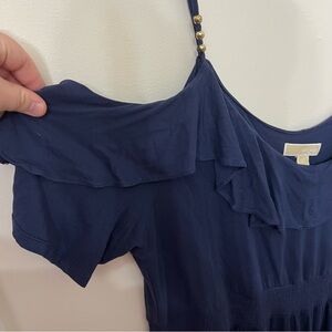 Good condition Michael Kors navy blue dress with ruffle features and off the shoulder cut outs. Great for mother of the bride or office wear!