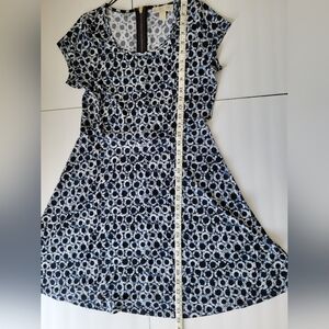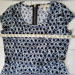Michael Kors Navy Blue Polka Dot Sunburst Career Wear Office Short Sleeve Dress