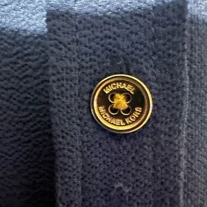 Michael Kors Navy Blue Romper with Gold Detail, Button Closure and Belt