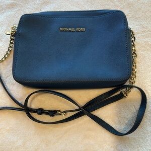 Michael Kors Navy Blue Saffiano Classic Leather Shoulder/Crossbody Gold Hardware