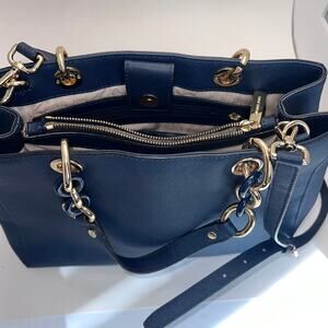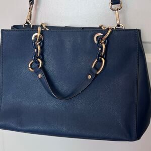 Michael Kors Navy Blue Saffiano Leather Cynthia Tote with Gold Hardware