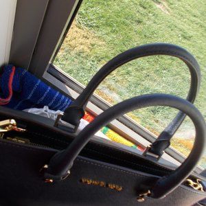This is a brand new without tags saffiano leather navy blue handbag. It is an extra large handbag. I purchased it a several others from a local retailer in a lot, that were used as only show handbags. It has never been used. It comes from a smoke and pet free home. Please, let me know if you have any questions. Thank you for looking.