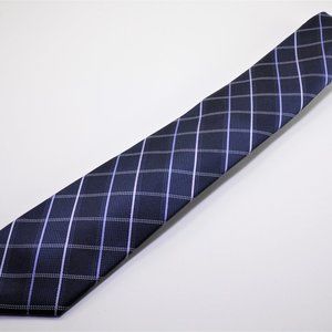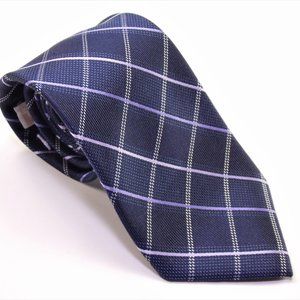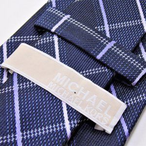 Michael Kors Navy Blue Striped Plaid Silk Necktie