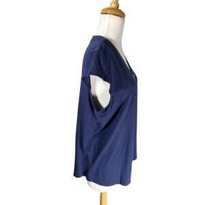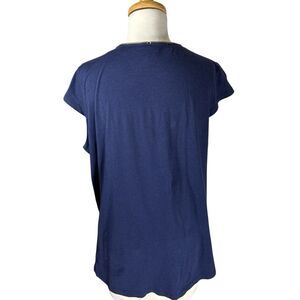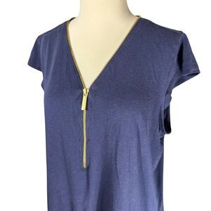 Michael Kors Navy Blue Zipper Edge V-neck Jersey Knit Top Sz XL