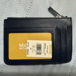 Sleek navy card holder. Features multiple card slots. Compact and stylish design.