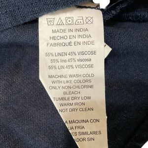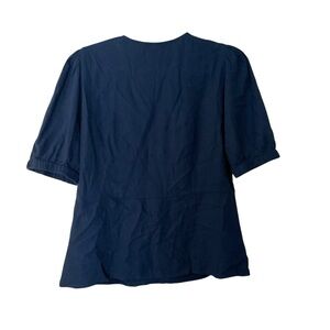 Michael Kors Navy Linen Blend Top M Puff Sleeves Buckle Detail