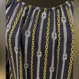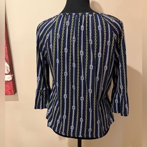 Michael Kors Navy, White & Gold Chain & Rope Design Blouse, size Small