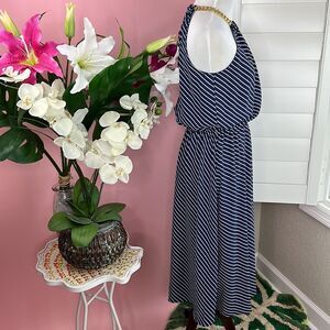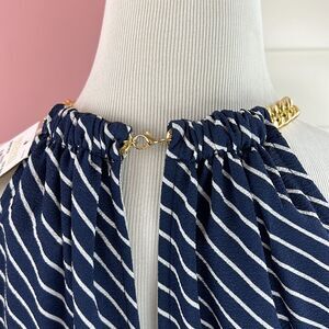 • Michael Kors Navy White Stripe Keyhole Halter Dress