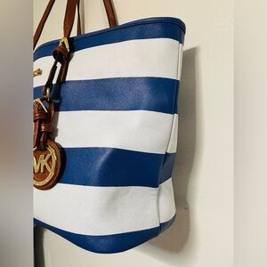 Michael Kors Navy and White Striped Tote