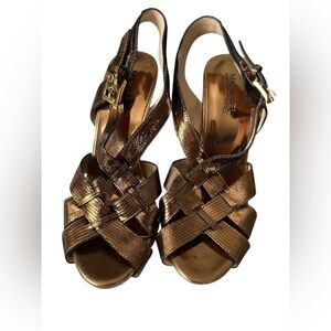 Michael Kors Niki Crossstrap Stiletto Heels – Antique Brass Gold, Size 6.5