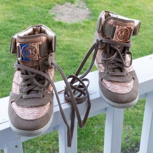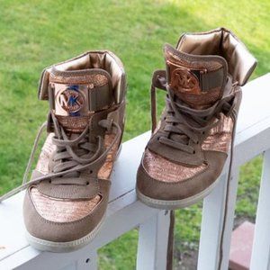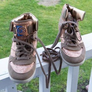 ๐ Michael Kors Nikko II - Mettalic Rose Taupe Suede - see description for size!