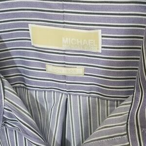 Michael Kors non-iron striped button down shirt in excellent condition. Purple, black and white stripes.