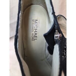 Michael Kors Norma Ankle boots! These chic black suede boots feature a comfortable 3" wedge heel and a convenient side zipper for easy wear. They are pre-owned but in New with Tags condition. The only flaw? is the inside label on one shoe is smudged. Manufacturing error that does not affect the wearing of the shoe. Only an issue if this is a gift. Otherwise you are getting a pair of shoes that originally cost almost $200. shoes.