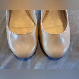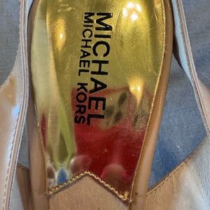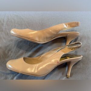 Michael Kors Nude Beige Leather Slingback Round Toe Kitten Heel Shoes Sz 7.5