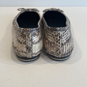 Perfect for the fashionista in you, the Michael Kors Collection Odette ballet flats are sure to add some style to your wardrobe. Genuine snakeskin upper. Bow embellishment at the toe with metal tips. Slip-on design for quick and easy on and off.