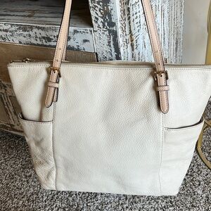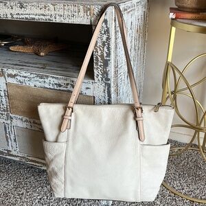 Michael Kors Off-White Leather Double Handles Pockets Tote Shoulder Bag
