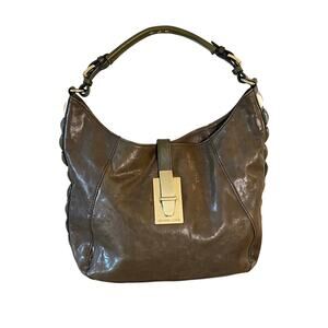 Michael Kors Olive Green Leather Studded Shoulder Bag Y2K Edgy Boho Hobo Fall