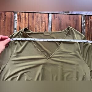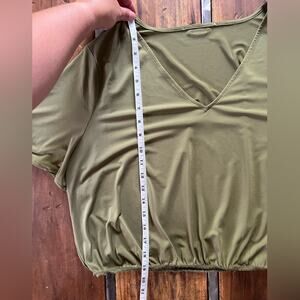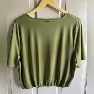 Michael Kors Olive Green V-Neck Stretch Hem Top Size L