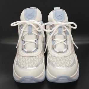 NIB. Never worn. Light sky blue, gray, and optic white with silver accents.