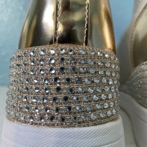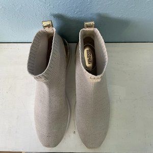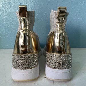 Michael Kors Olympia woman’s trainer size 7.5, worn only a few times. beige with gold. slight heel.