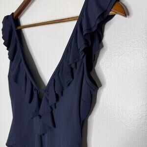 Michael Kors One Piece Swimsuit Size 8 Blue Ruffle Front V Neck Classic Chic