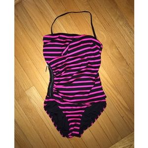 Hot pink/Black stripes- Zippered side- Can wear with or without a strap- As new(worn once)
