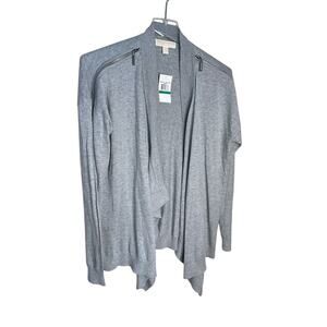 Michael Kors Open Cardigan Zipper Shoulders Pearl Heather Womens Size Large NEW