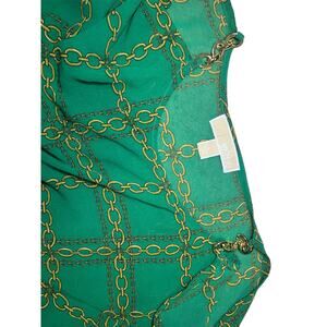 Michael Kors Open Shoulder Chain Print Green Top - Large