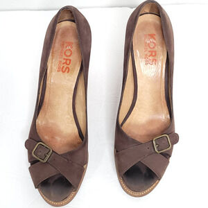 Michael Kors Open Toes Brown Heels Size 10M GENUINE All LEATHER SHOES Wood Heel