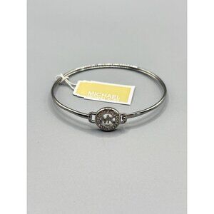 ITEM: Michael Kors Logo Initials Open-Work Pave Crystals Halo Setting Polished Stainless Bracelet