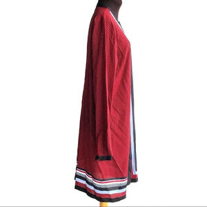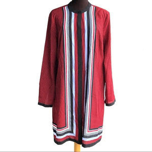 Michael Kors Women’s Size 6 Red/Black Blaze Optic Scarf Band Collar Long Sleeves Tunic Shirt Dress. Condition is Preowned.