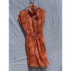 Michael Kors Orange Abstract Swirls Elastic Waist/Belt Dress Size M GORGEOUS! 🔥
