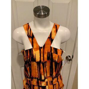 Michael Kors Orange & Black Flame Sheath Dress, Size 8
