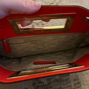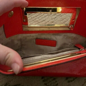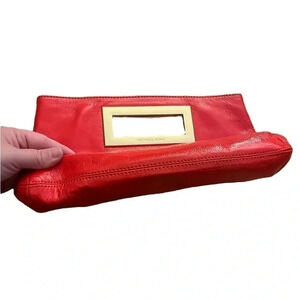 This Michael Kors Berkley clutch is sure to be an amazing addition to your closet! The orange piece is crafted from leather and features dual inbuilt gold-tone handles. It opens to a spacious fabric-lined interior that can easily hold all your daily essentials. Carry it with elan!