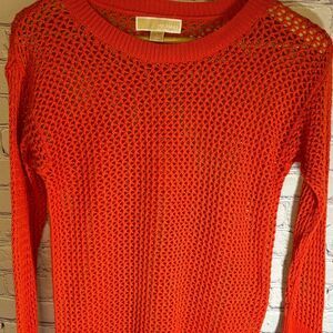 Michael Kors Orange Open Knit Crewneck Sweater Coastal Size S
