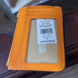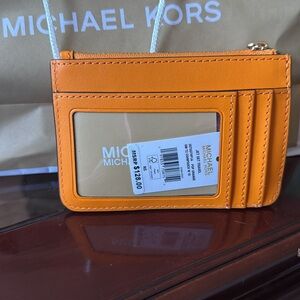 Stylish and compact, this Michael Kors card holder is perfect for organizing your essentials. The vibrant orange color adds a pop of color to your accessories collection.