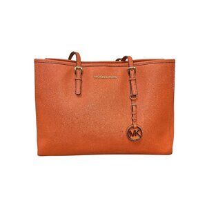 Stylish orange tote bag by Michael Kors. Features dual handles and signature logo charm. Perfect for everyday use. Smoke free. Please ask questions