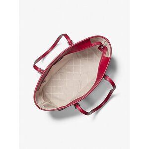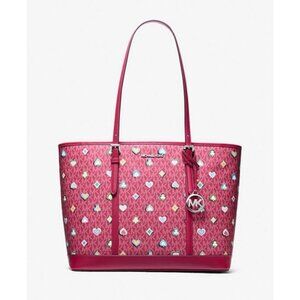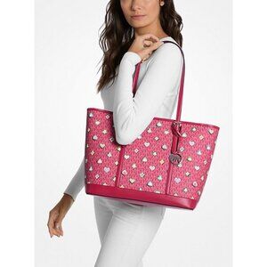Michael Kors Outlet Jet Set Large Printed Signature Logo DK RASPBERRY Tote Bag