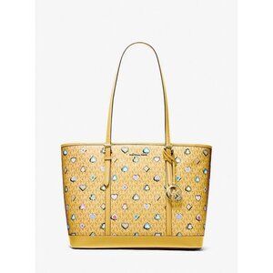 Michael Kors Outlet Jet Set Large Printed Signature Logo HONEY Tote Bag