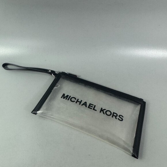Michael Kors Outlet Jet Set Travel Large Clear Vinyl Wristlet in Black