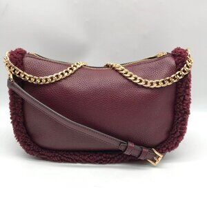 Sleek and sophisticated, the Michael Kors Oxblood Pebbled Leather Carmela Pouchette Crossbody Bag adds a touch of refined luxury to any outfit. (8490-2LM-10.25 )
