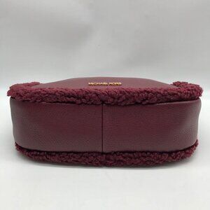 Michael Kors Oxblood Pebbled Leather Carmela Pouchette Crossbody Bag