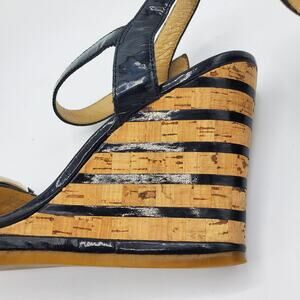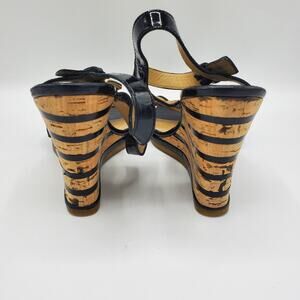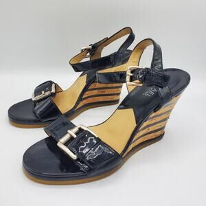 Michael Kors Pacific Patent Leather Wedge Buckle Strap Sandal Heel Shoe Women's Size 7.5