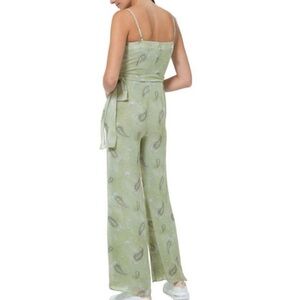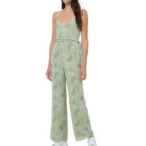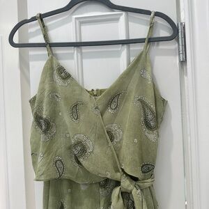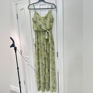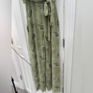 Michael Kors Paisley wrap, front wide leg green jumpsuit spaghetti strap size L