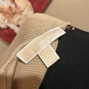Michael Kors Pale Tan Hi-Lo Hem Sweater With Small Gold Logo Back Zipper, size M
