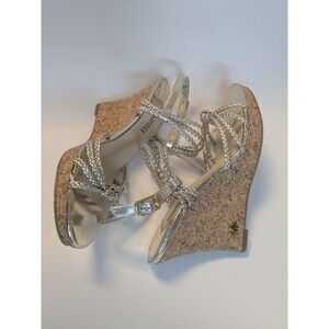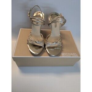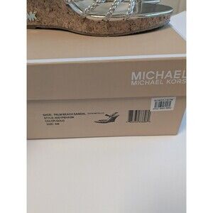 Michael Kors Palm Beach Sandals Wedge Shoe Strappy Sandal Gold Metallic Sz 8 New