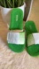 Bold green slides with signature logo. Comfortable and chic.